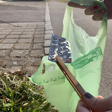 Resultat war, es kommt sehr gut an bei den Nutzern, die Zange lieber aus Buche und die Tüten aus Recycling oder Bioplastik. Und finanzielle Unterstützung ... eher weniger.
