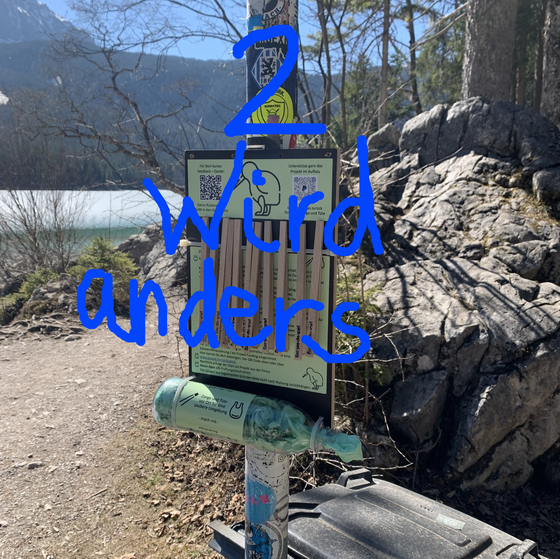 Zum Beispiel drei Aufsteller in einem kleinem Gebiet, Spender und Mülleimer. Jeder der mag, kann sich was nehmen und etwas Unrat aus der Natur herausholen.